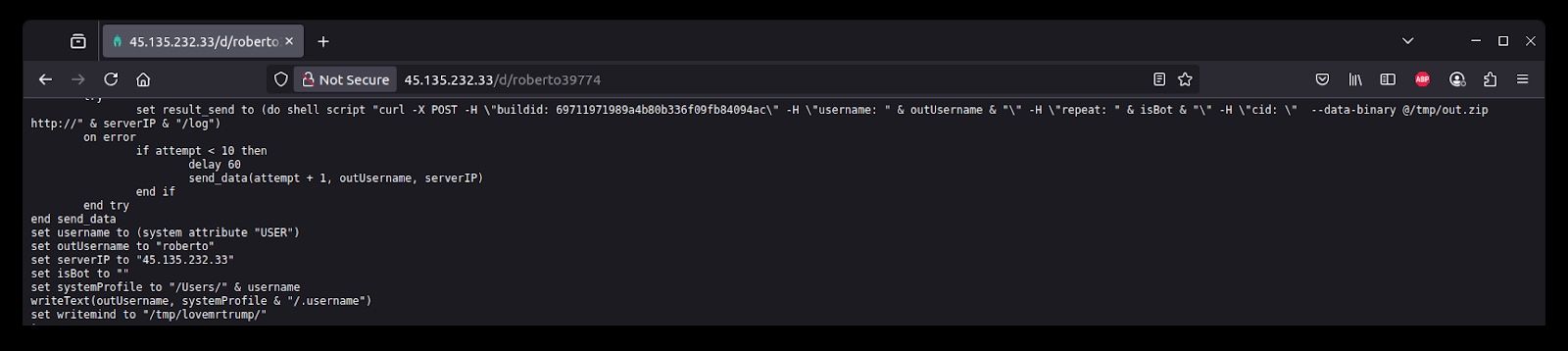 Examining the “roberto39774” AppleScript confirmed the Odyssey infostealer was hosted on that IP address June 23, 2025.
